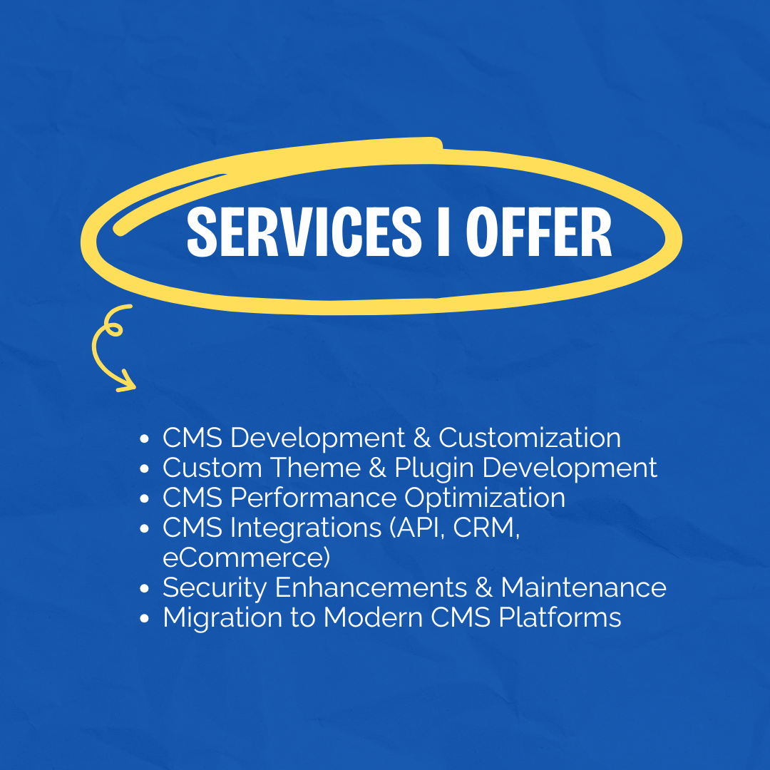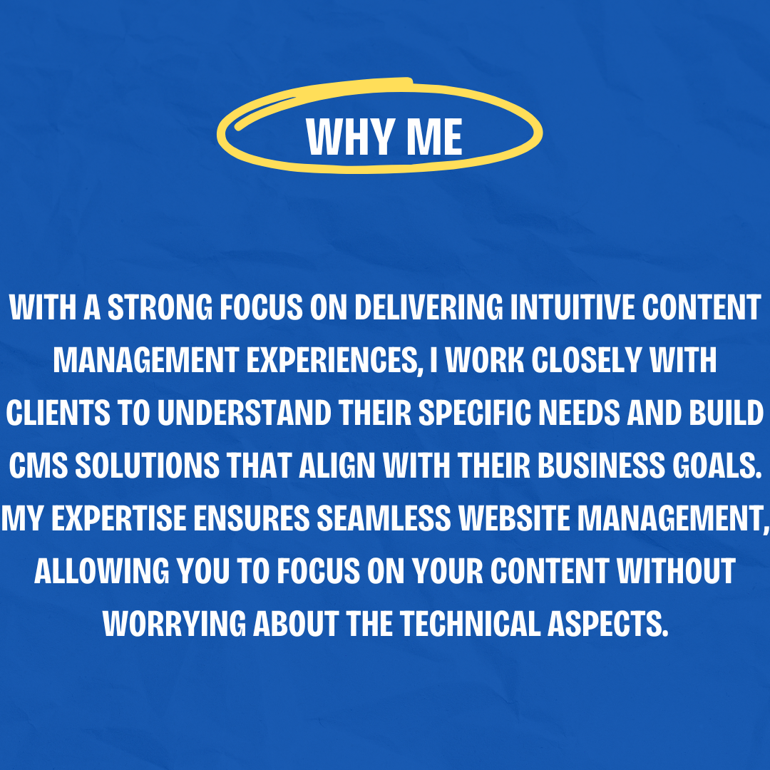 Developing and customizing Content Management Systems (CMS) to give businesses full control over their digital content. Whether it’s setting up WordPress, Drupal, or Joomla, I focus on creating scalable, secure, and easy-to-use systems. I ensure every CMS platform I deliver is user-friendly, making it simple for teams to manage their content and updates without a developer's assistance.