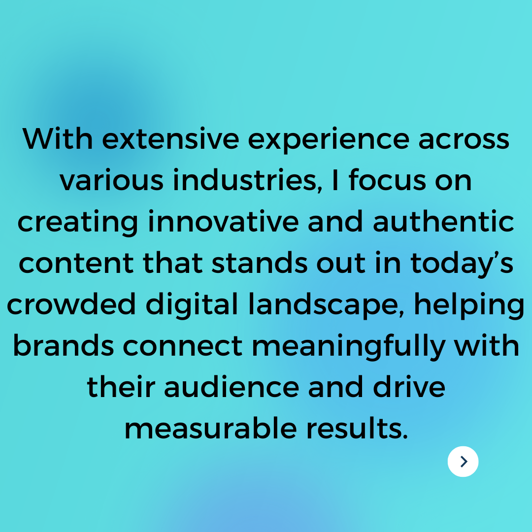 Help brands to develop their voice through creative content strategies across various platforms. From blog posts to social media visuals, I ensure that all content reflects the brand's identity and resonates with the target audience. My expertise in visual branding allows for cohesive, memorable storytelling that engages audiences.