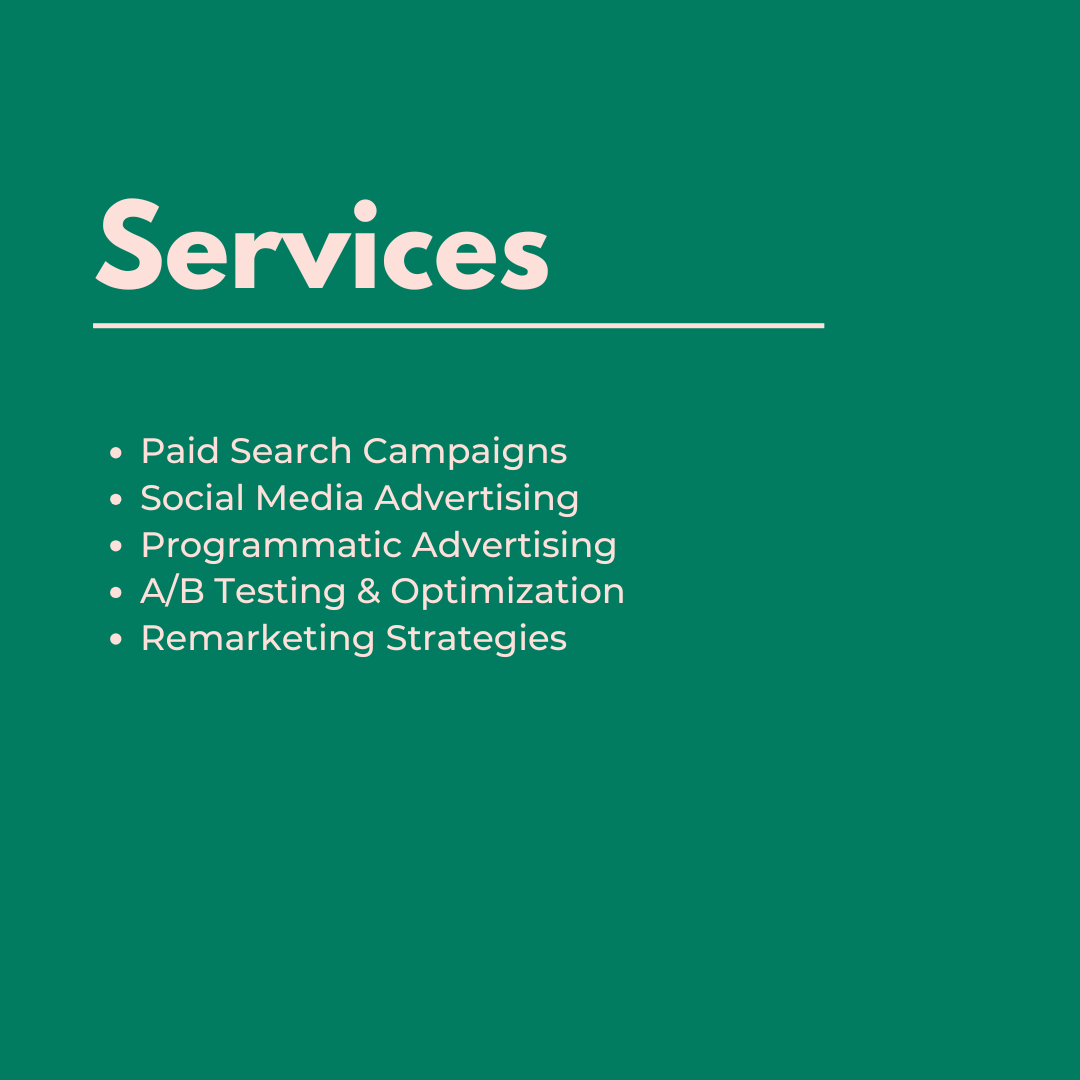 Design high-performing paid media campaigns that maximize ROI and fuel growth. With expertise in paid search, social media ads, and programmatic advertising, I help businesses connect with target audiences while optimizing ad spending for results.