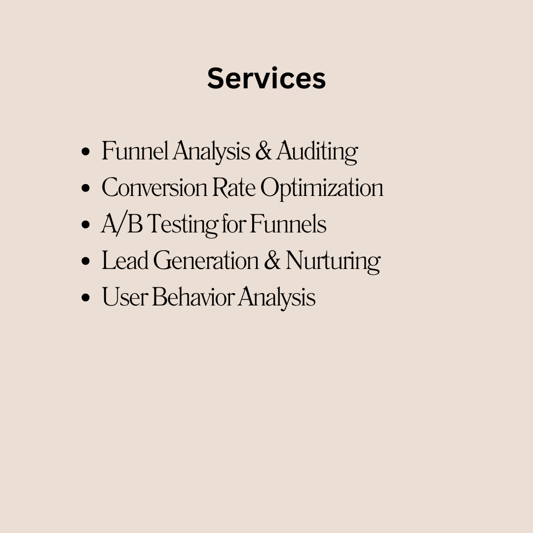 I help businesses increase conversions by optimizing sales funnels. By analyzing user behavior and running A/B tests, I identify bottlenecks and ensure a smoother customer journey, driving higher conversion rates and revenue.