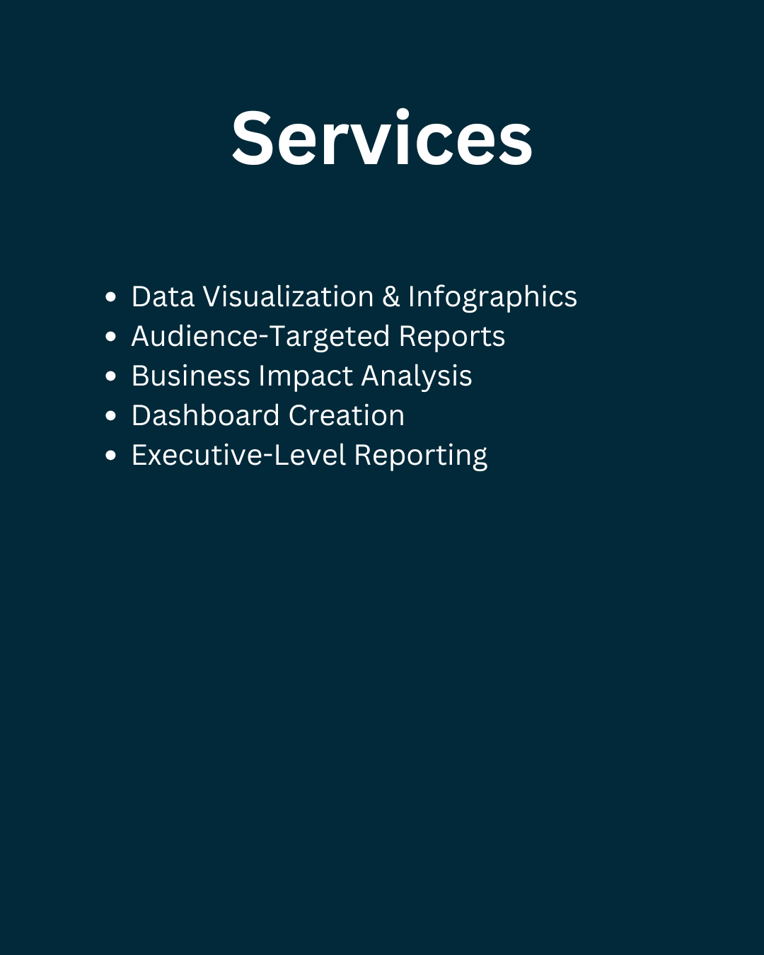 Want to turn data into compelling stories? I transform complex datasets into compelling visual stories that drive actionable business decisions. By blending data visualization with strategic insights, I help businesses communicate data in a clear and engaging way to stakeholders at all levels. Whether it's crafting executive-level reports or designing dashboards, my approach ensures data is not just understood but acted upon.