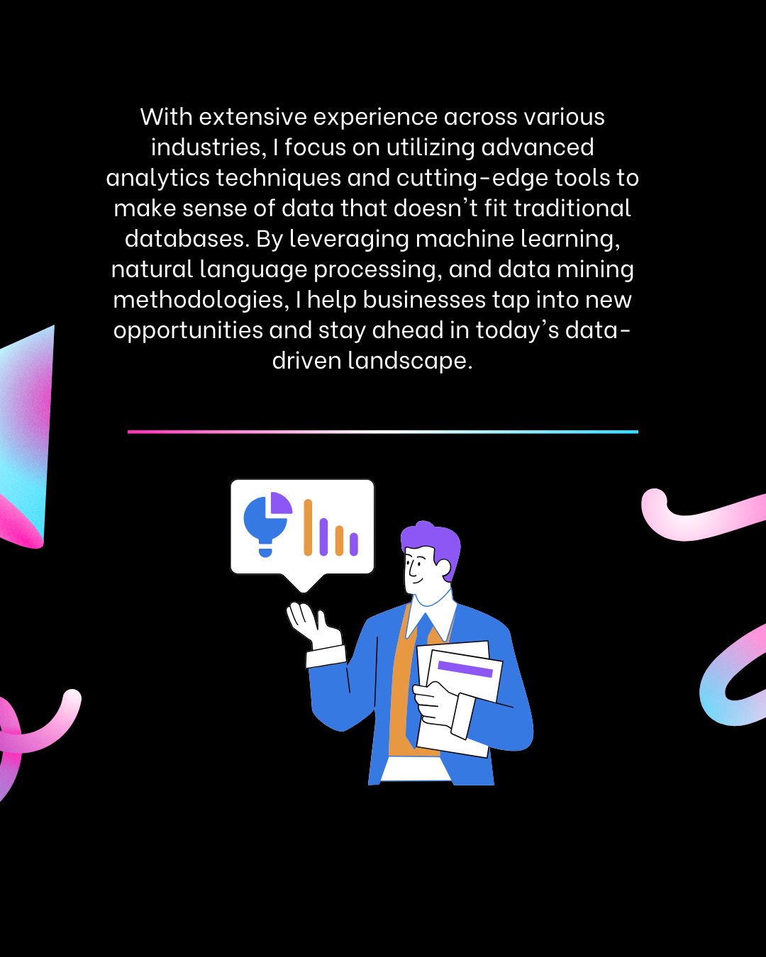 I excel at turning complex, unstructured data into insights that drive competitive advantages. With my skills, your organization can harness data you didn’t know you had.