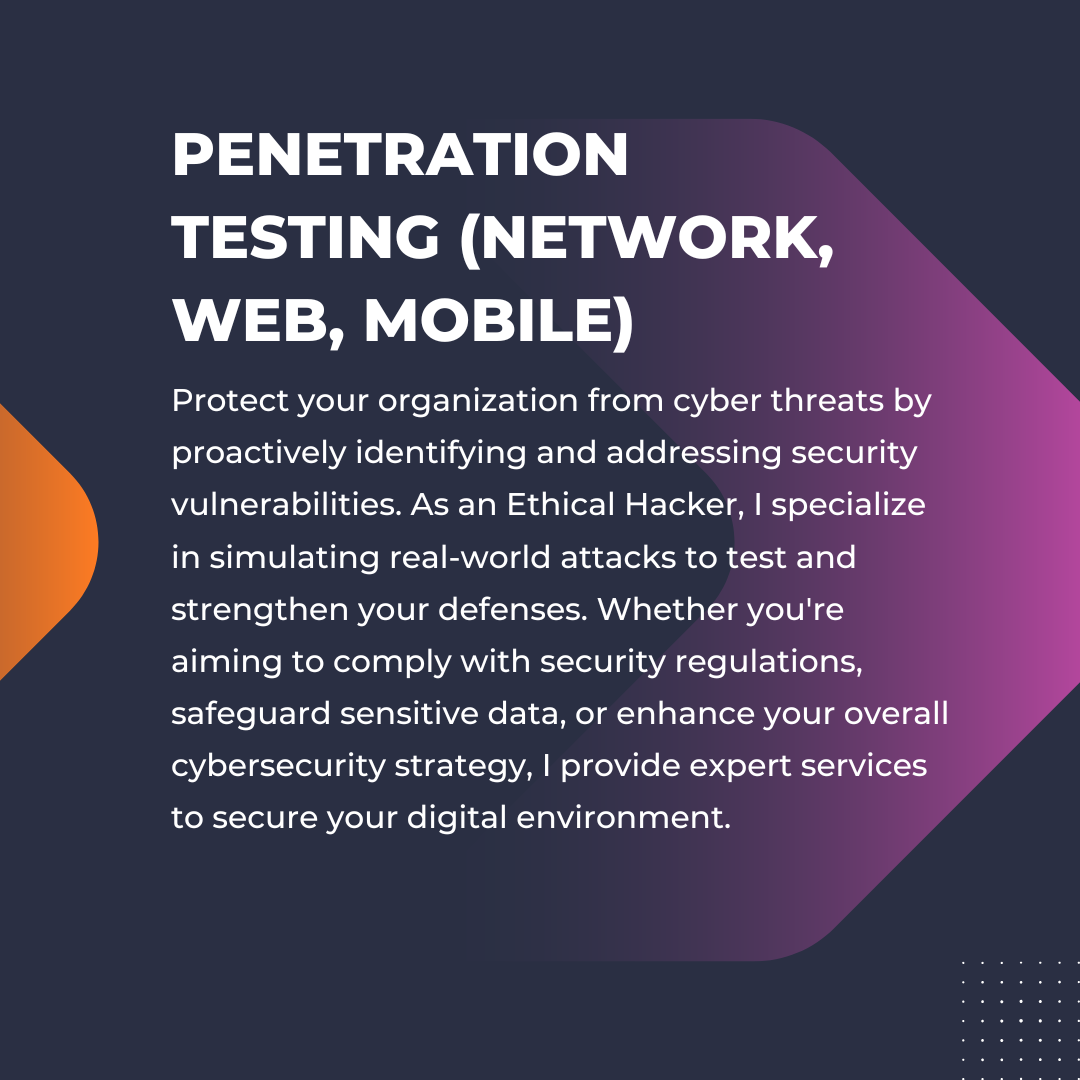 Do you need a security expert who thinks like a hacker? I help businesses protect against digital threats by identifying vulnerabilities through penetration testing and risk analysis. I simulate real-world attacks to uncover security gaps before malicious actors can exploit them.