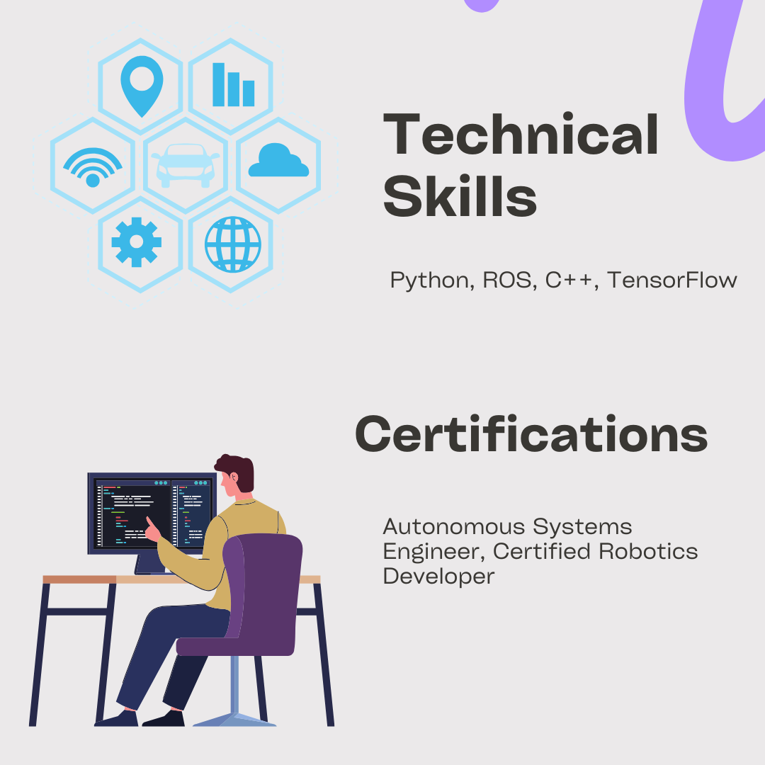 Certifications: Autonomous Systems Engineer, Certified Robotics Developer