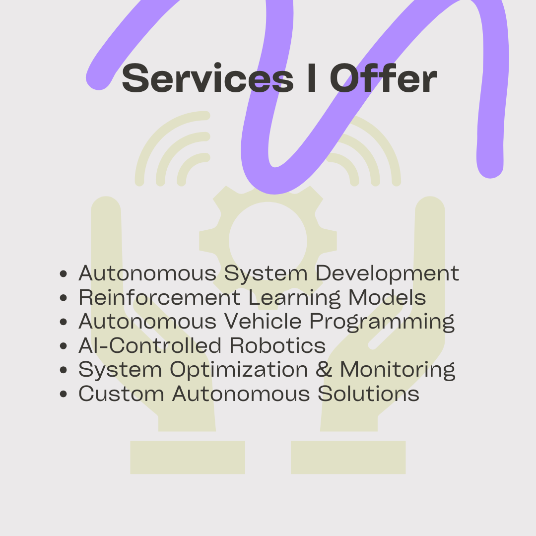 Building systems that can think and act on their own? I develop intelligent autonomous systems that can operate independently in real-world environments. From self-driving cars to AI-powered robotics, I specialize in creating systems that learn, adapt, and make decisions without human intervention, improving efficiency and safety in industries like manufacturing and logistics.