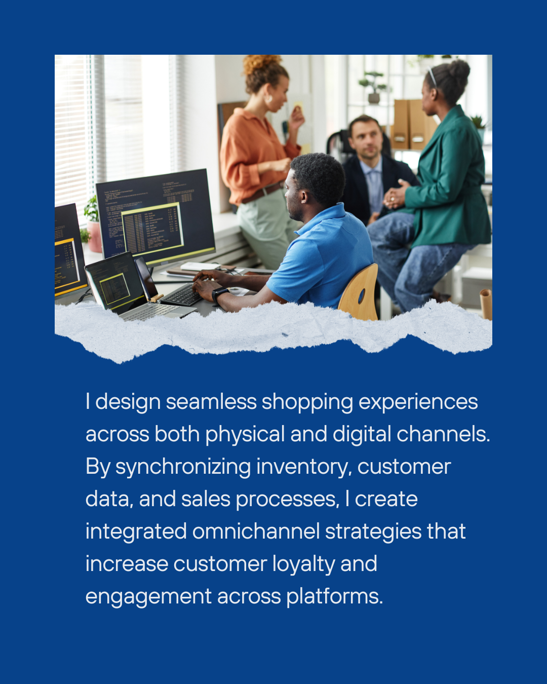 I design seamless shopping experiences across both physical and digital channels. By synchronizing inventory, customer data, and sales processes, I create integrated omnichannel strategies that increase customer loyalty and engagement across platforms.