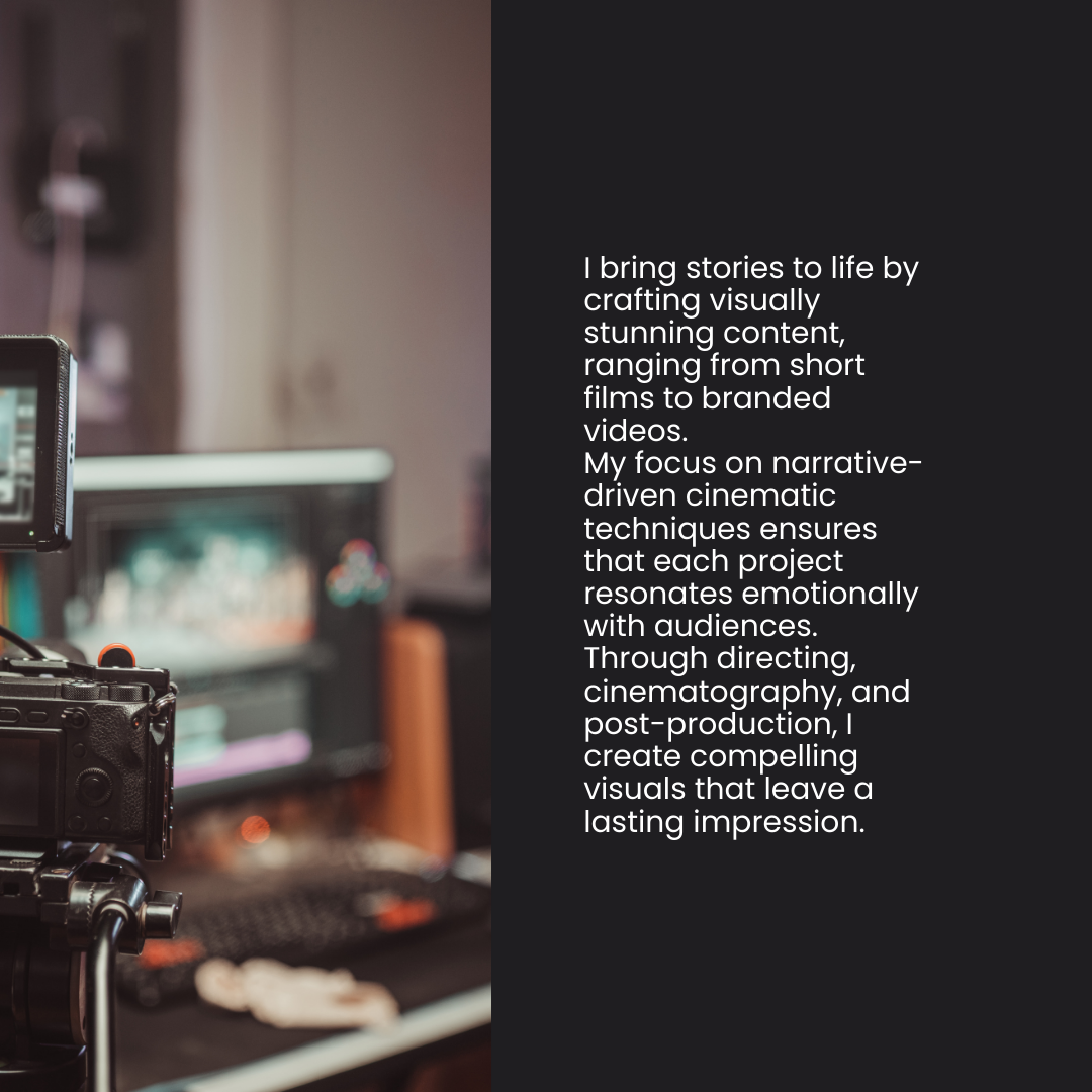 If you are looking for someone who can bring stories to life through the art of cinema, I bring stories to life by crafting visually stunning content, ranging from short films to branded videos. My focus on narrative-driven cinematic techniques ensures that each project resonates emotionally with audiences. Through directing, cinematography, and post-production, I create compelling visuals that leave a lasting impression.