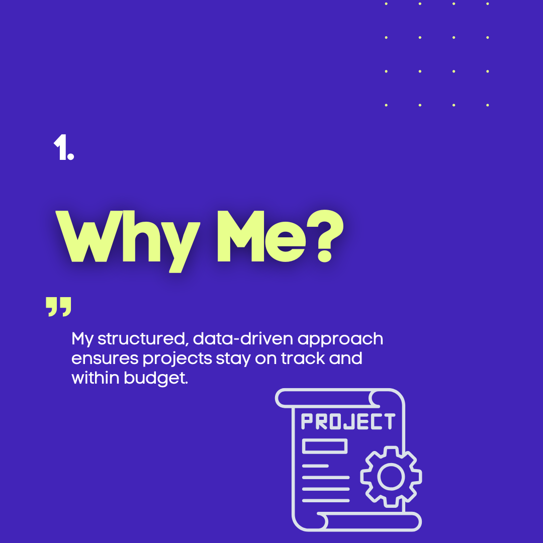 My structured, data-driven approach ensures projects stay on track and within budget.