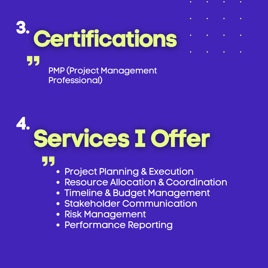 Certifications: PMP (Project Management Professional)